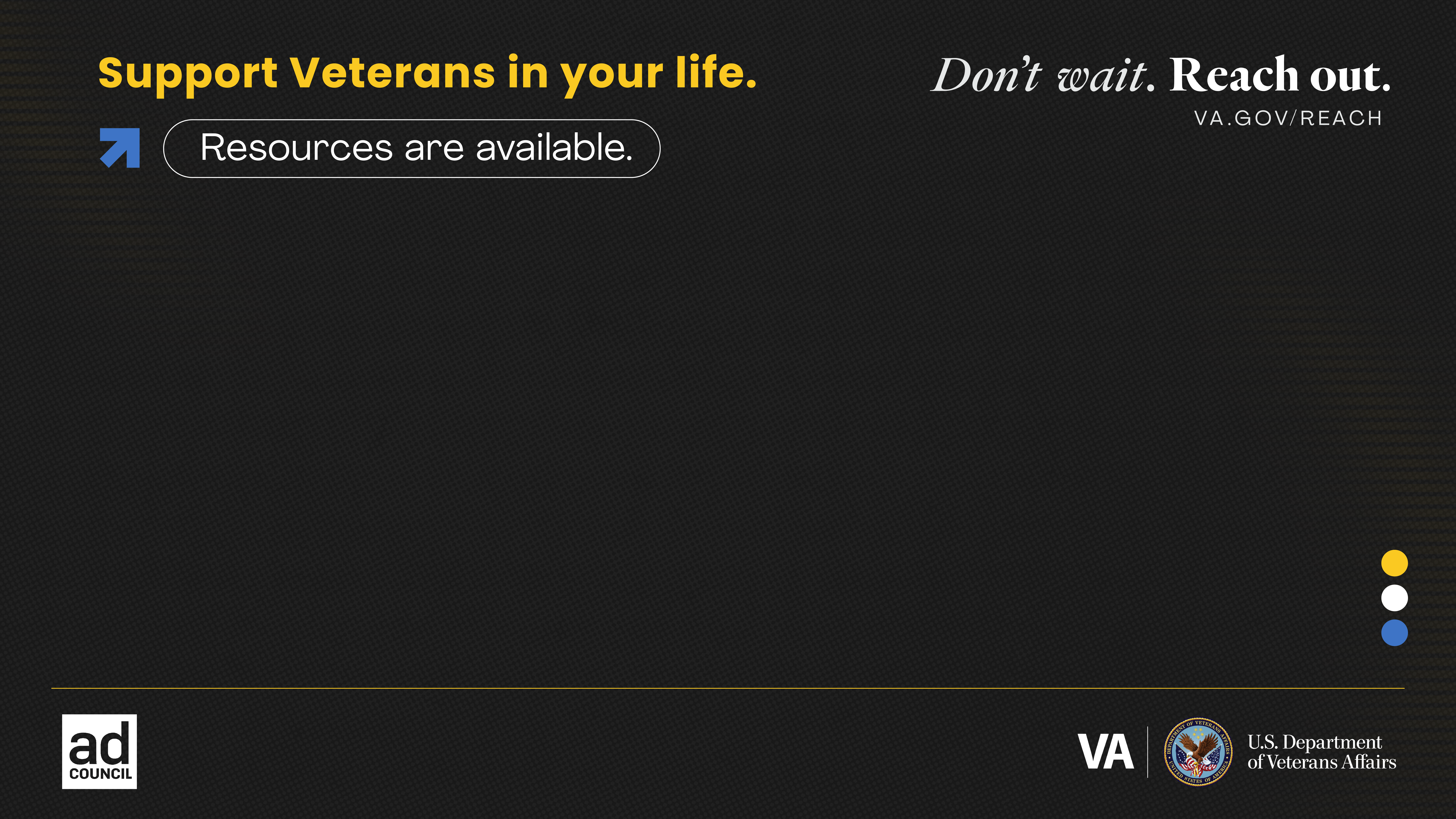 Everyone can support Veterans by checking in on them and encouraging them to seek help if needed. Use this video background and share the resources available at VA.gov/REACH. #VetsReachOut